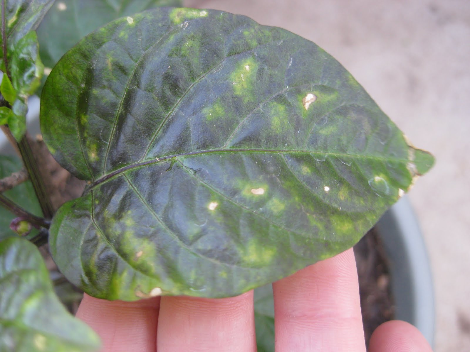And...yet another potential problem/deficiency. Any identification/advice would be FABULOUS! This is also on a pepper plant.